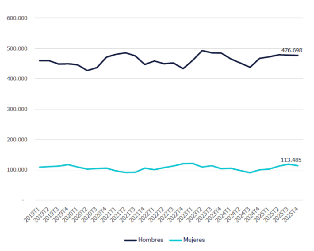 Aun así, el grupo de 25 a 34 años fue el único que registró crecimiento en el último trimestre del año, si bien sigue sin alcanzar en volumen al grupo de mayores de 55.